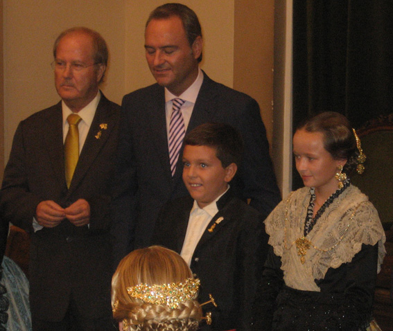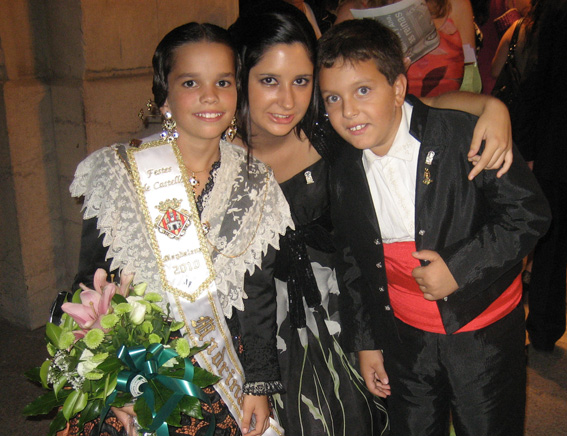 ![]() Nuestros representantes infantiles Lourdes Mª Climent y Alvaro Voltes acompañados por su madrina Irene Lerma y su presidenta Elisabeth Breva.