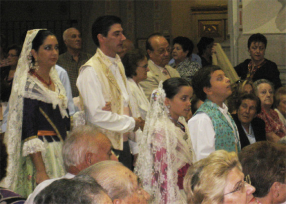 Invitados por el Centro Aragonés de Castellón, nuestros representantes de la Magdalena 2010, Irene Lerma, Lourdes Mª Climent y Álvaro Voltes acompañados por el Vicepresidente Vicente Javier Queral acudieron a la Iglesia de la Santísima Trinidad para participar en la misa en honor a la Virgen del Pilar. Tras asistir a la misa baturra pudieron disfrutar de unas jotas bailadas en la plaza Escuelas Pias. |