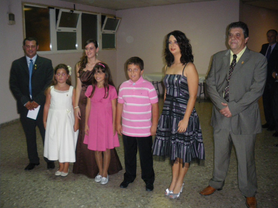 Gaiata 2 Fadrell. Madrina Anna Amurgo Vila, Madrina Infantil Blanca Vidal Benedito, Presidente Infantil Jaime García Marzá y Presidente Juan José Sánchez Gázquez (3/10/2009)