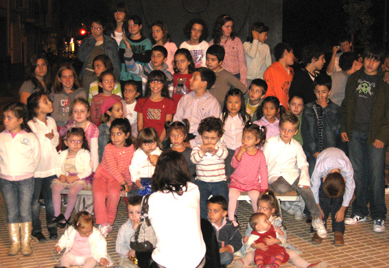 Lourdes Mª y Álvaro acompañados por la comisión infantil.