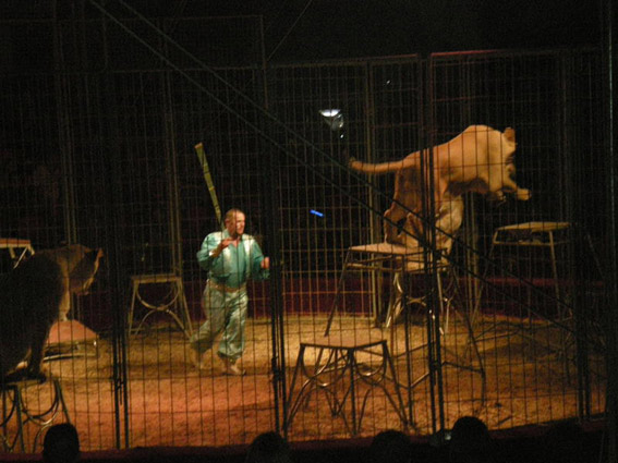 Lourdes Mª y Alvaro en la puerta del circo. Los pequeños del Sequiol en el interior del circo El domador con los fieros leones Los payasos Invitados por Canal 9 y con la mediación de la Junta de Fiestas de Castellón, los niños de las diferentes gaiatas y asociaciones de Castellón disfrutaron el sábado 21 de noviembre de una mañana de circo. El Circo Americano ofreció a los pequeños espectadores la mejor representación de su espectáculo en el que no faltaron las fieras, los payasos, los malabaristas y un buen número de actuaciones. Sin duda un estupendo espectáculo por lo contentos que abandonaron el recinto. |