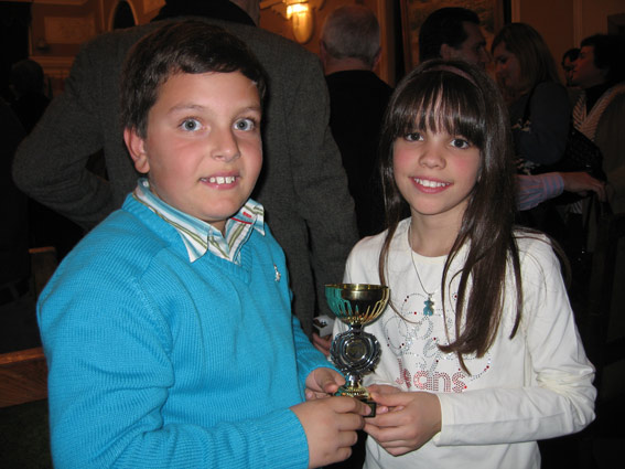 Lourdes Mª y Alvaro con el trofeo que acredita el 5º premio de belenes en categoría de Asociaciones y Centros de Tercera Edad conseguido en esta edición navideña.
