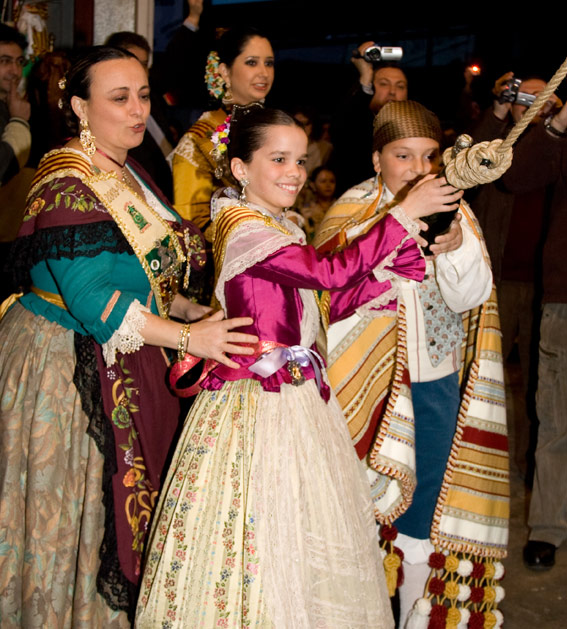 Lourdes Mª y Alvaro dispuestos a bautizar la Gaiata Infantil, que por indicación del artista Manuel Breva, lleva por lema "Caliu de Llum Sequiolera"