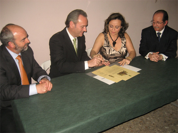Momento de la firma por parte del Alcalde Alberto Fabra del documento de cesión.