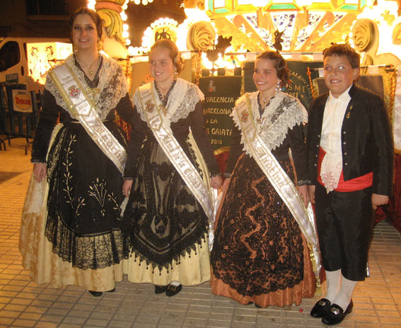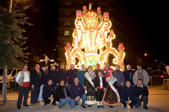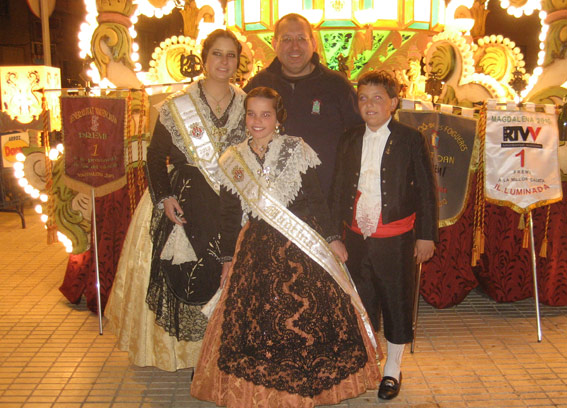 Irene, Lourdes Mª y Alvaro con Jovi y el equipo constructor de la gaiata