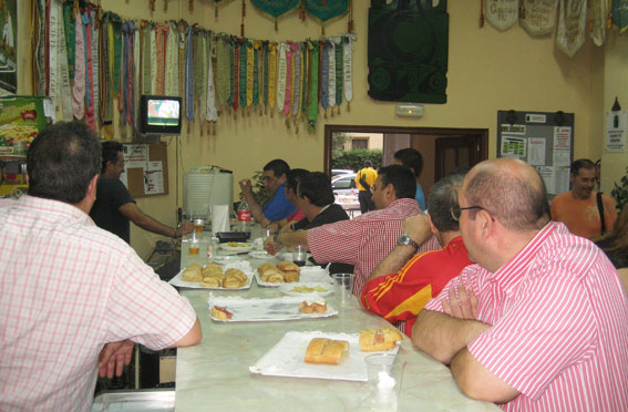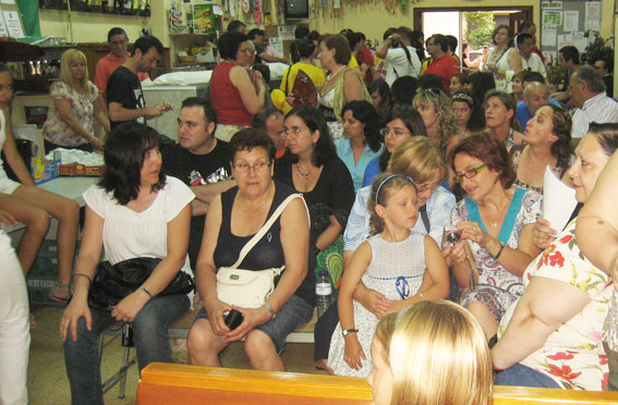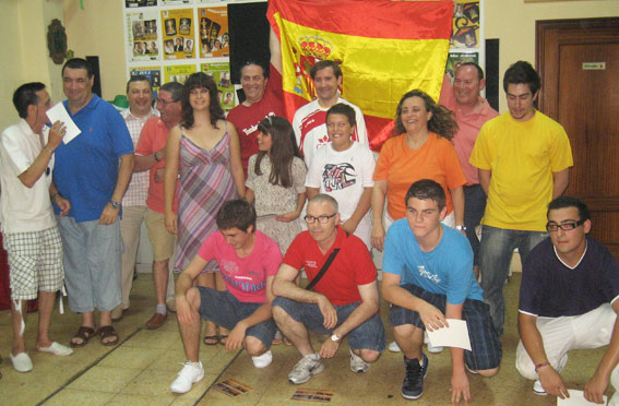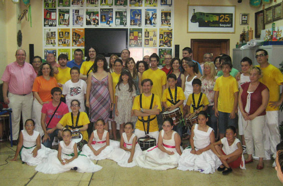 Fotografía de los componentes de las diversas actividades Refrigerio servido en la plaza con el hinchable al fondo Los Sequiolos tampoco se perdieron el partido Paraguay- España La A.C. Gaiata 15 Sequiol cierra el curso de la Magdalena 2010 con el acto de clausura de sus actividades. El Cau de la A.C. Gaiata 15, Sequiol, acogió el sábado 3 de julio la fiesta de clausura del curso de la Magdalena 2010 con la clausura de actividades culturales y deportivas y el agradecimiento a todas las familias que hacen posible el crecimiento constante de la asociación cultural, como colectivo implicado en todos los ámbitos de la vida castellonense. La fiesta comenzó con una demostración de baile del grupo de bailes regionales, que interpretaron el ‘Ball Plá’ seguida del reconocimiento a los participantes en el grupo de teatro valenciano. A continuación, fue el turno de los componentes del equipo de fútbol sala del Sequiol, quienes recibieron el aplauso de los presentes. Una demostración de baile latino a cargo del grupo de bailes de salón dio paso a la exhibición final, a cargo de los miembros de la Escola de Dolçaina i Tabal de la Gaiata 15, quienes junto con los integrantes de la Sección de Dolçaina i Tabal interpretaron la ‘Gener” y "Salimar". A medida que cada uno de los grupos integrantes de las distintas actividades acudian al escenario, las madrinas de 2010, Irene Lerma y Lourdes Mª Climent, junto con el presidente infantil Alvaro Voltes, hacían entrega de una estupenda fotografía patrocinada por Estudio Gama, en la que se recogían diversos momentos de la actividad. Asimismo, al finalizar el acto también fueron obsequiadas las familias que componen este colectivo con una fotografía de los monumentos gaiateros del Sequiol en 2010, también gracias al patrocinio de Estudio Gama. Para finalizar, se sirvió un ágape al aire libre y se montó un castillo hinchable que hizo las delicias de los niños, y posteriormente dio comienzo el baile, que se prolongó hasta altas horas de la madrugada. Con este acto de clausura del curso, la Gaiata 15, Sequiol, dio por finalizado el ejercicio magdalenero 2010 y se prepara ya para afrontar el camino hacia la próxima Magdalena 2011.